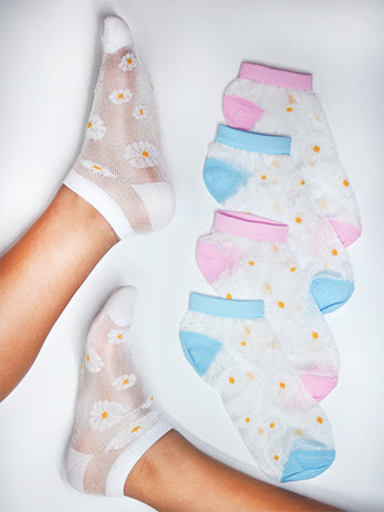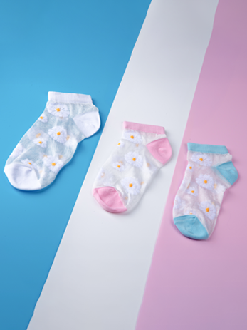 Tripack de medias tobilleras clásicas transparentes en colores azul, blanco y rosado. Suaves, cómodas y versátiles para cualquier ocasión.